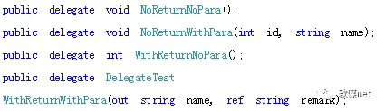 1 委托声明:就是一个没有方法体的方法,分号代替方法体,加上delegate关键字,可以在类里面,也可以在类外面,甚至可以使用ref/out关键字
